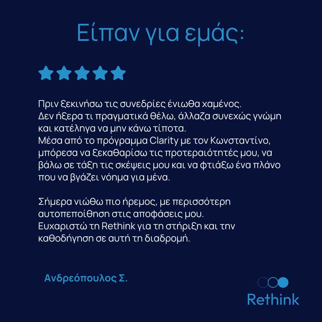 Ο ιδρυτής της Rethink, καλεσμένος στην εκπομπή «Κοίτα να δεις» είχε τη χαρά να συζητήσει για το πώς ανακαλύπτουμε τον εαυτό μας μέσω του coaching.